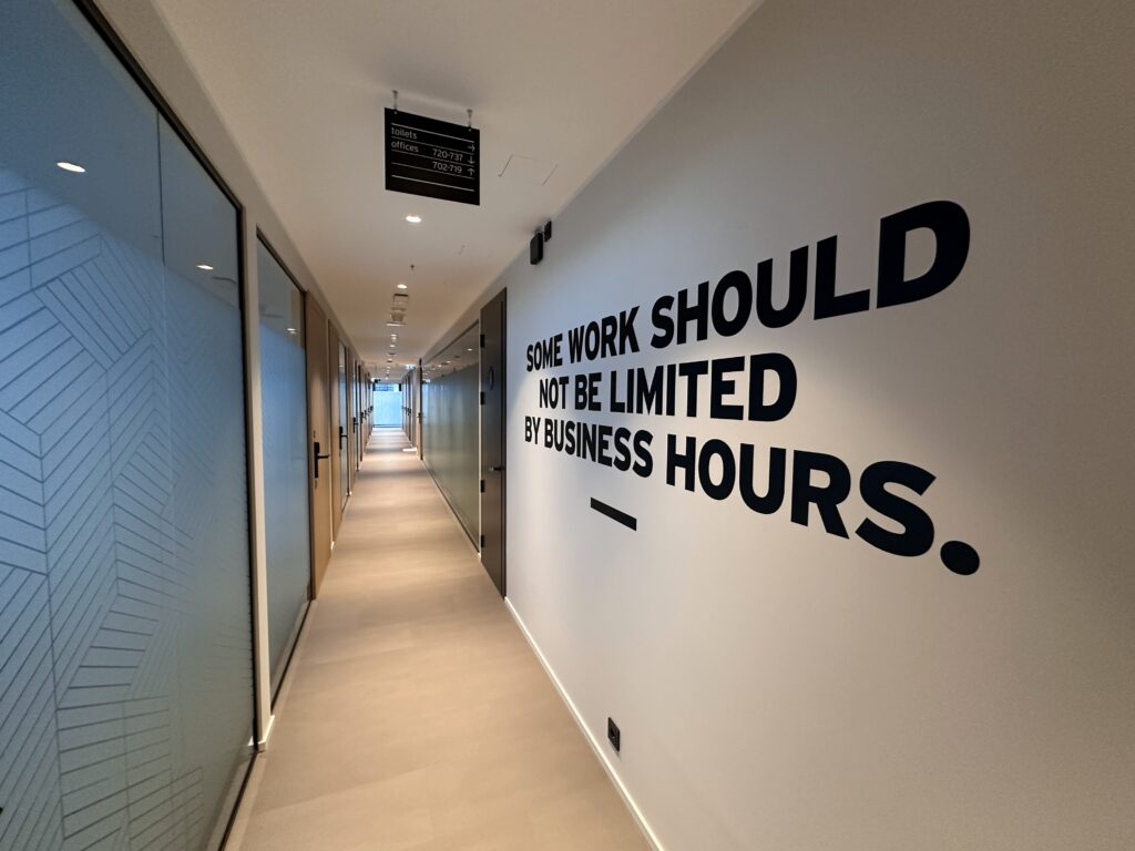 Kleebised seinal on valmistatud kasutades tugevaid ja vastupidavaid kleebismaterjale. Tekstid on välja lõigatud plotterlõikuses ning on paigaldatud seinale siirdekile abil. Lisaks on sama koridori klaaspindadele paigaldatud matistatud kiledest klaasidekoorid mis on valmistatud kasutades sama tehnikat. Samuti on lakke kinnitatud ka konkreetse korruse infotabloo ruumide nimedega ja juhistega.