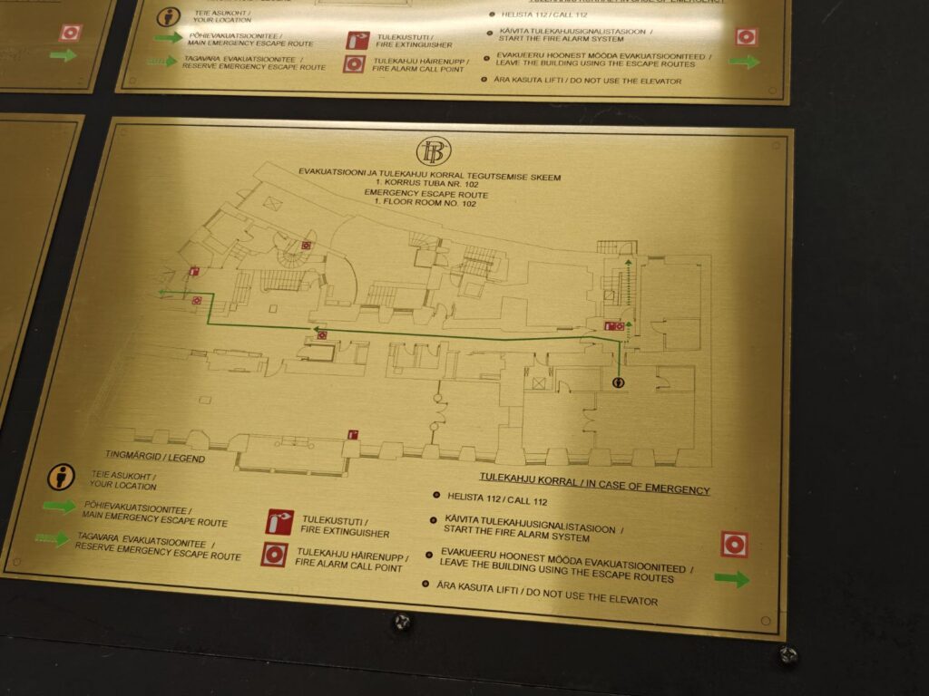 Messingust silt on teostatud UV-prindis, see tähendab, et siltide trükk on teostatud otse messing materjalile. Sildid on kasutusel evakuatsiooni plaanidena ning on paigaldatud hotelli siseruumidesse.