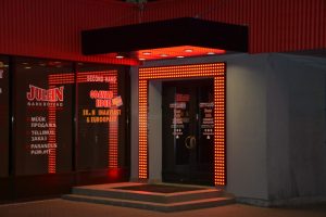 JAA Disain / Tooted / Valguskastid ja valguspostid / LED tahvlid / LED valgusti ümber City Casino sissepääsu / LED valgusti ümber City Casino sissepääsu