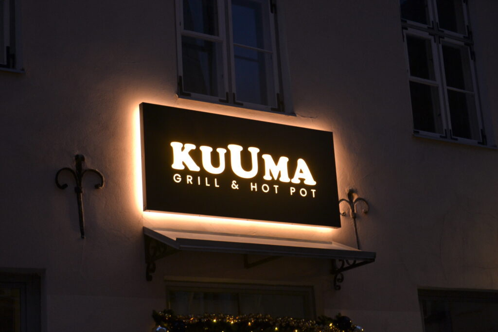 Taustvalgusega reklaam on valmistatud ühevärvilisest komposiitmaterjalist. Korpuse esipinnast on välja freesitud logo ja tekstid. Freesitud elementide taha on paigaldatud valgust läbi laskev opaalklaas mille esipind on korpuse esipinnaga ühes tasapinnas. Tagapind on teostatud läbipaistvast akrüülist ning kogu reklaam on toodud seinast distantspukside abil veidi eemale. Sisse on paigaldatud kvaliteetsed LED moodulid mis valgustavad reklaami esipinnast väljafreesitud kujunduselemente ning ka reklaami taga olevat seina.